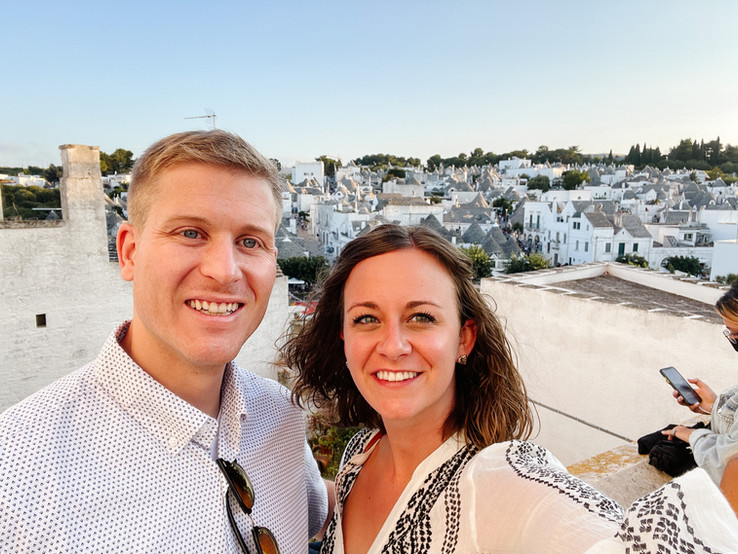 Unlike many people who travel to Europe, Jesse and I have never been to Italy (Technically, Jesse spent some time during his MBA in Milan, but were going to ignore that for the story's sake). All of the major Italian cities are high up on our ever growing bucket list: Rome, Venice, Florence, Naples, etc. and for good reason, but our first time in Italy was in the city of Brindisi, in the southern region of Puglia. It is the stiletto part of the "boot" of Italy and has a beautiful rocky coastline with crystal clear water. We also were able to explore a nearby town, Alberobello, with the distinct trulli-style buildings.